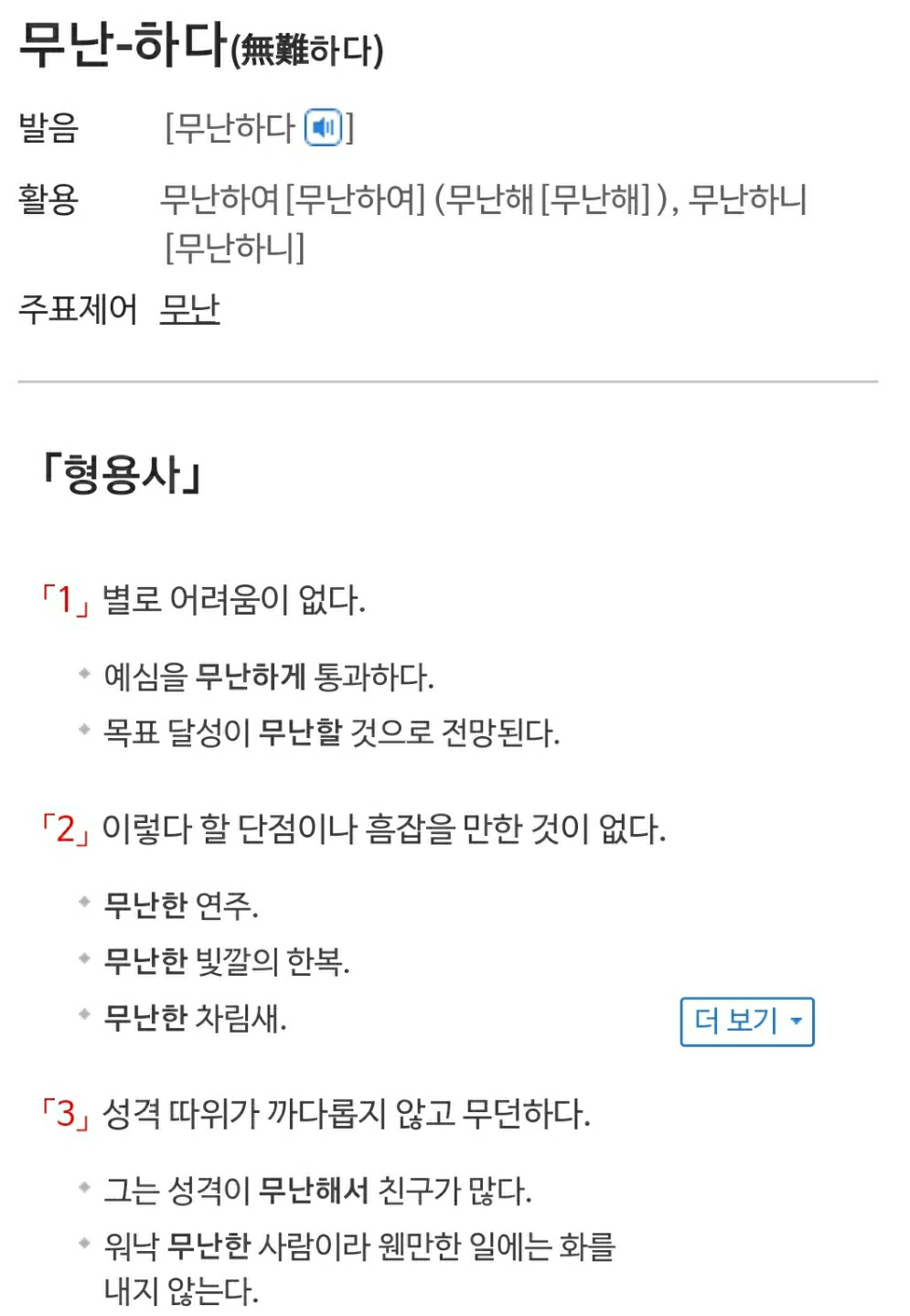 무난 문안 무난하다 문안하다 정리